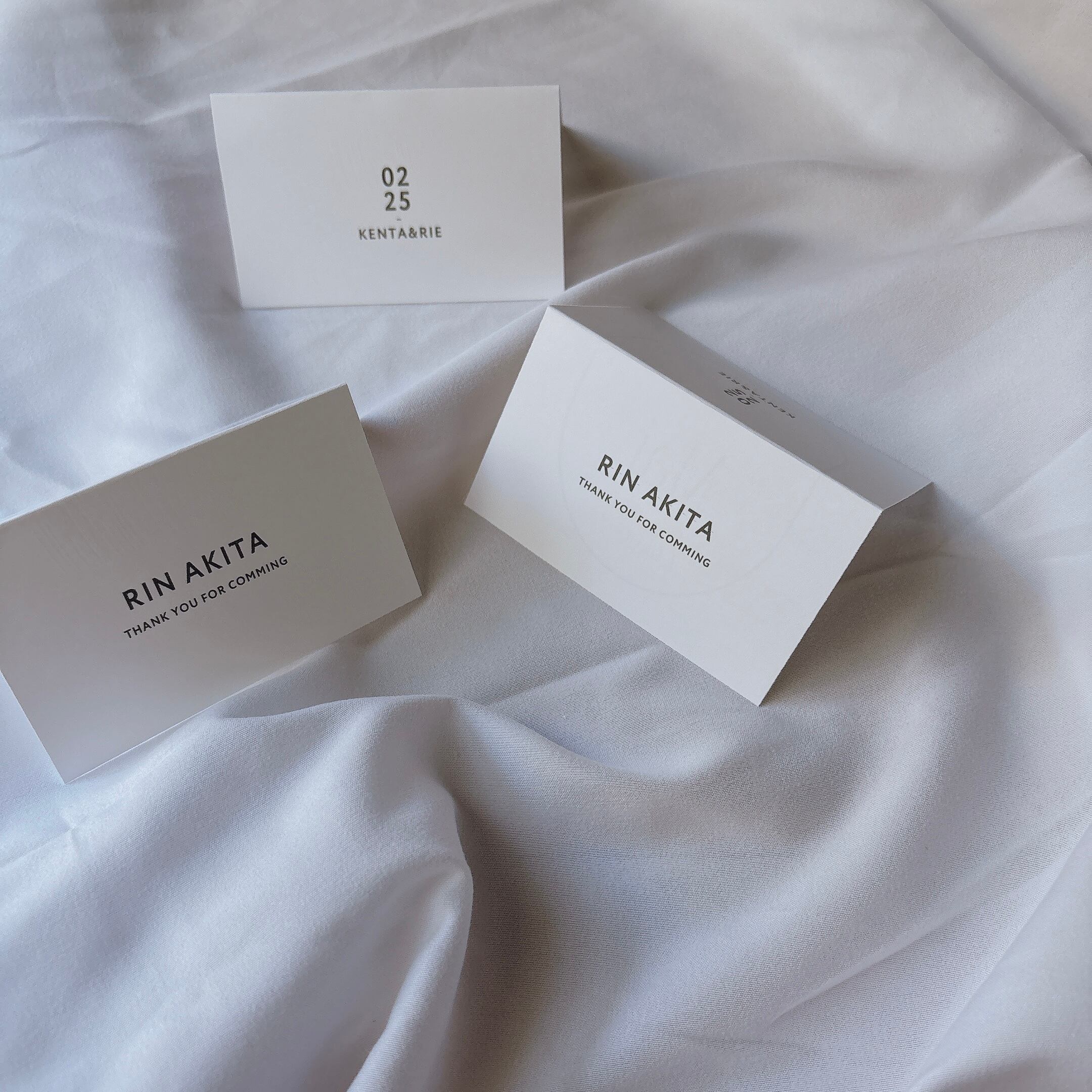 シンプルかつ洗練されたデザインのこちらの席札は、結婚式の特別な瞬間を一層引き立てるアイテムです。受注制作だからこそのこだわりを持ち、あなたの大切な日をより鮮やかに彩ります。