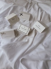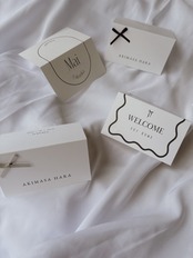 シンプルかつ洗練されたデザインのこちらの席札は、結婚式の特別な瞬間を一層引き立てるアイテムです。受注制作だからこそのこだわりを持ち、あなたの大切な日をより鮮やかに彩ります。